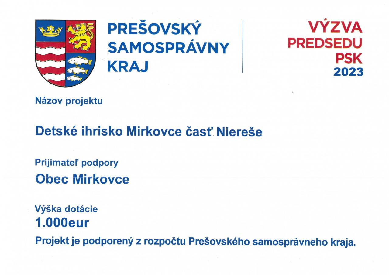 Informácia o projekte Detské ihrisko Mirkovce časť Niereše